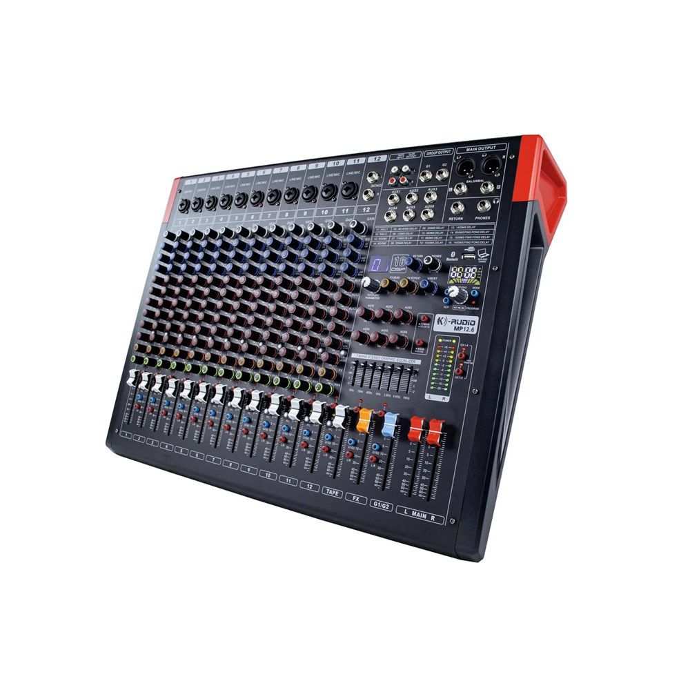 A mesa de som analógica K-AUDIO MP12.6 é um equipamento profissional projetado para mixagem e controle de som ao vivo. Com sua construção robusta e recursos versáteis, essa mesa oferece um desempenho excepcional em estúdios de gravação, shows ao vivo e eventos corporativos de médio porte.A qualidade sonora da mesa de som K-AUDIO MP12.6 é impressionante, proporcionando uma experiência de áudio imersiva e precisa. Com seus canais premium de baixo ruído e alto headroom, essa mesa oferece um desempenho de mixagem profissional.O design puro do equalizador de 3 bandas (ALTO, MÉDIO, BAIXO) permite ajustes precisos nas frequências para moldar o som desejado. Além disso, a mesa possui phantom power de +48V para microfones condensadores de estúdio, garantindo um desempenho adequado desses tipos de microfones.Com 6 saídas AUXILIARES, a mesa de som proporciona flexibilidade na roteamento do áudio para dispositivos externos ou efeitos adicionais. O processador de efeitos DSP integrado de 24 bits oferece uma ampla variedade de efeitos para adicionar textura e profundidade ao som.O equalizador gráfico estéreo de 7 bandas permite uma correção precisa das frequências para monitores ou mixagens principais, garantindo uma qualidade de som aprimorada. O leitor de MP3 integrado é compatível com vários formatos de áudio e possui conectividade Bluetooth, permitindo reprodução direta de músicas a partir de dispositivos compatíveis. A função de gravação é uma adição conveniente para capturar suas mixagens ou ensaios.A mesa de som K-AUDIO MP12.6 possui um dispositivo de fonte de alimentação de comutação integrado 100-240V AC, proporcionando flexibilidade para uso em diferentes locais.Com dimensões aproximadas de 57.3 x 43 x 12.5 cm e peso de 6,5 kg, essa mesa é compacta e fácil de transportar, facilitando sua configuração em diversos ambientes.A mesa de som analógica K-AUDIO MP12.6 é a escolha ideal para profissionais de áudio que buscam qualidade sonora excepcional, controle preciso e versatilidade em suas mixagens.Especificações tecnicas:- Console de mixagem de 12 canais- Canais premium ultra-baixo ruído, mixer analógico de alto headroom- Design puro de equalizador de 3 bandas (ALTO, MÉDIO, BAIXO)- Phantom power: +48V para microfones condensadores de estúdio- 6 saídas AUXILIARES- Processador de efeitos DSP de 24 bits com 16 ou 99 presets- Equalizador gráfico estéreo de 7 bandas para correção precisa de frequências- Leitor de MP3 integrado compatível com formato multi-áudio, com Bluetooth e função de gravação- Dispositivo de fonte de alimentação de comutação integrado 100-240V ACDimensões Aproximadas:- Altura: 12,5 cm- Largura: 57,3 cm- Profundidade: 43 cm- Peso: 6,5 kgItens Inclusos:- 1 Mesa de som K-AUDIO MP12.6- 1 Cabo de energia- 1 Manual de instruçõesGarantia- 12 meses de garantia pelo fabricante
